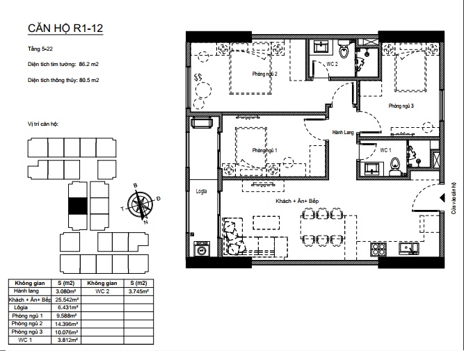 Căn hộ 3 phòng ngủ 80m2 dự án Florence Mỹ Đình